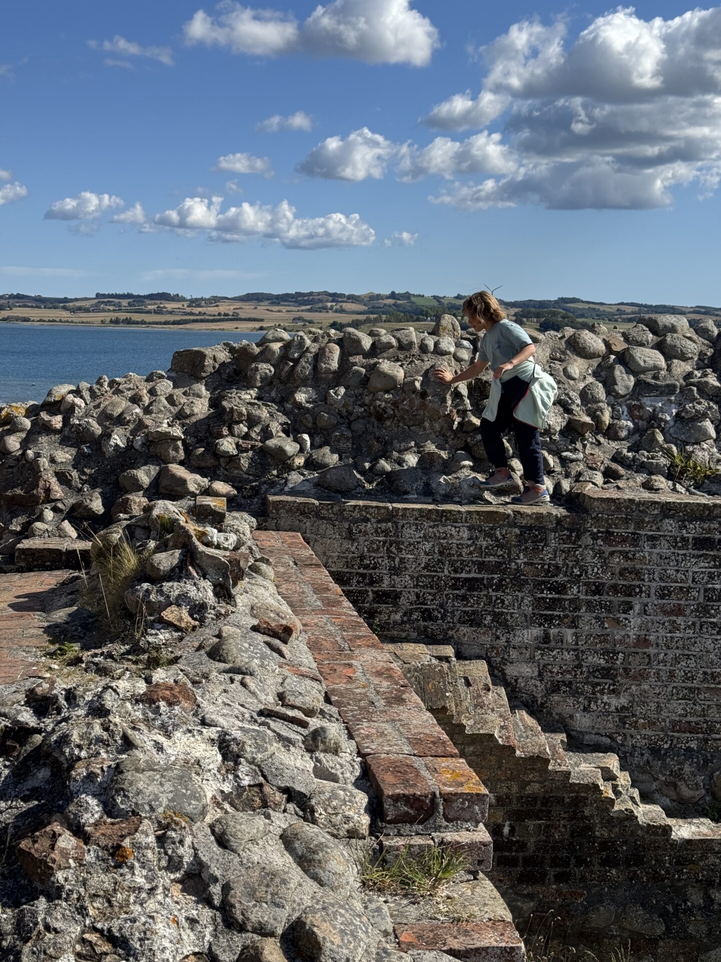 Kalø Slotsruin is one of the most scenic spots in the area. The ruins of this medieval castle stand on a small peninsula surrounded by water and fields where cows quietly graze. The site is beautifully prepared for visitors, with paths and viewpoints. You can climb up the old tower for panoramic views, and children (including my daughter) love running and exploring the ruins freely. We had such a relaxing and happy time there.