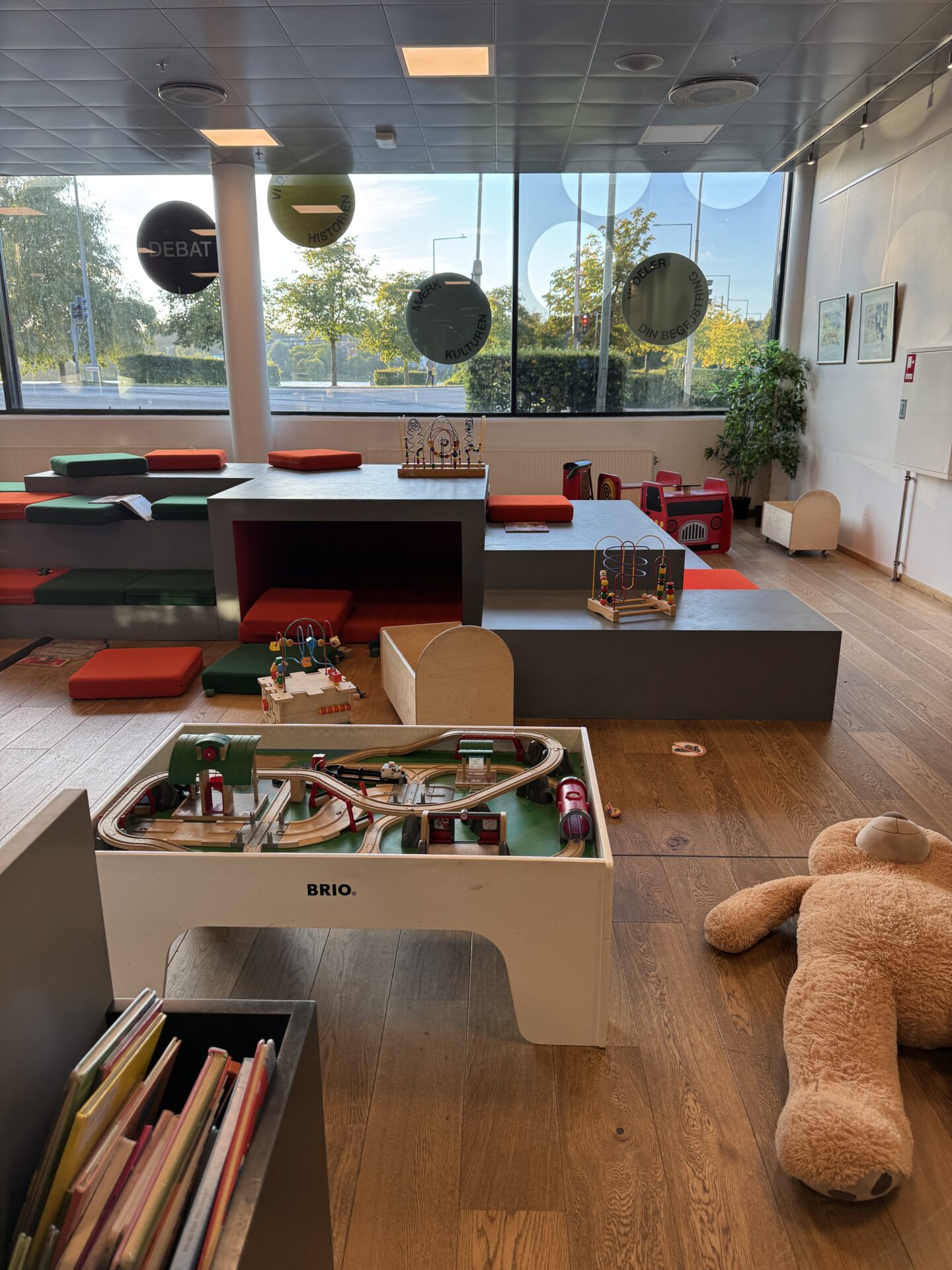 I didn’t expect to fall in love with a library, but the Kolding library truly stands out. The children’s section alone is huge, with beautiful books and creative play areas – think cozy reading nooks, building zones, and more. The adult section is just as impressive, with modern workspaces, a café, and areas for workshops. We also discovered a half finished puzzle on one of the tables and couldn’t resist helping out. What a lovely idea – community puzzling!