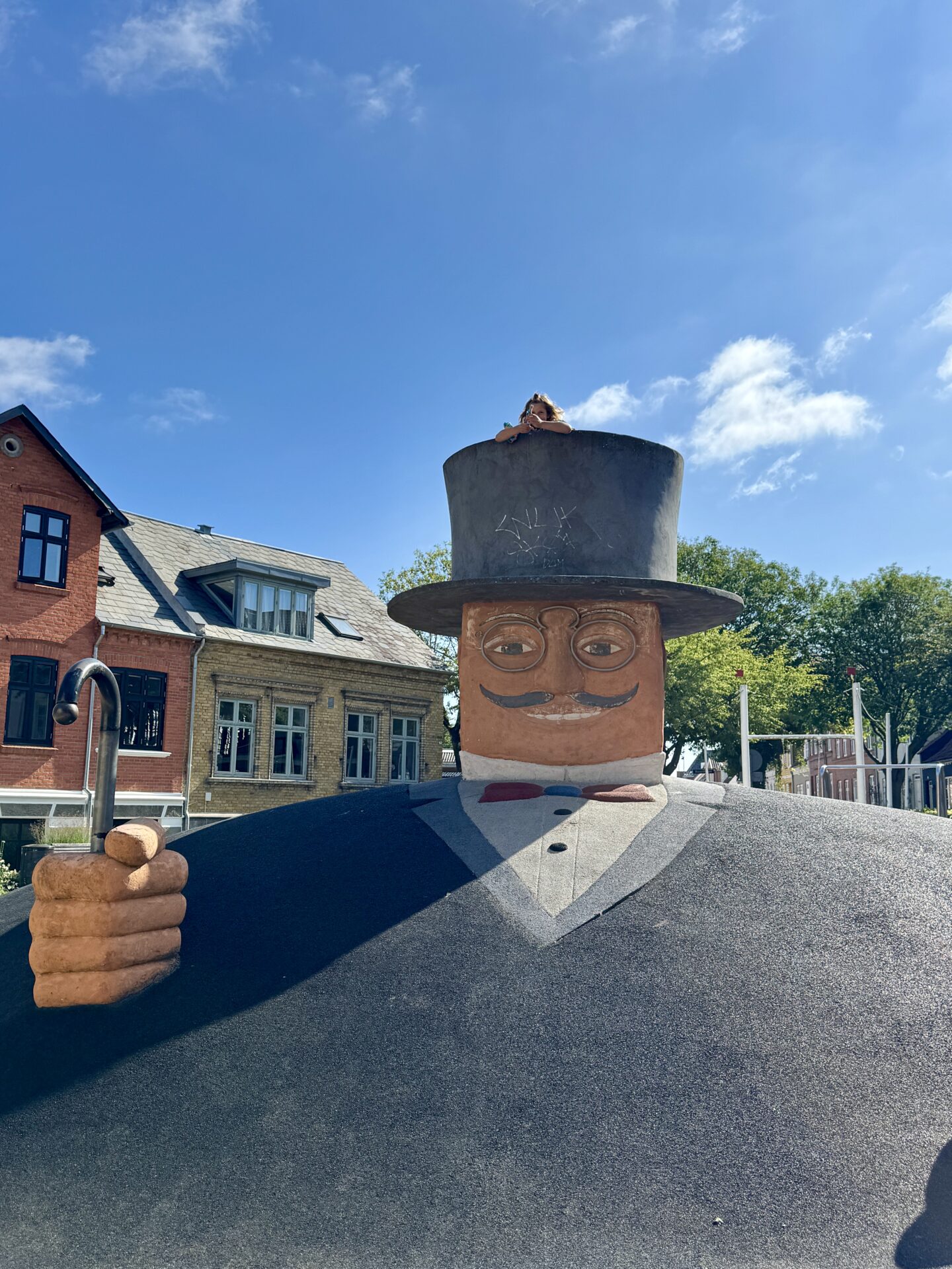 Fredensgade 29, Odense – a small but quirky playground with a giant man in a hat you can climb on and even crawl inside. Perfect for a quick stop.