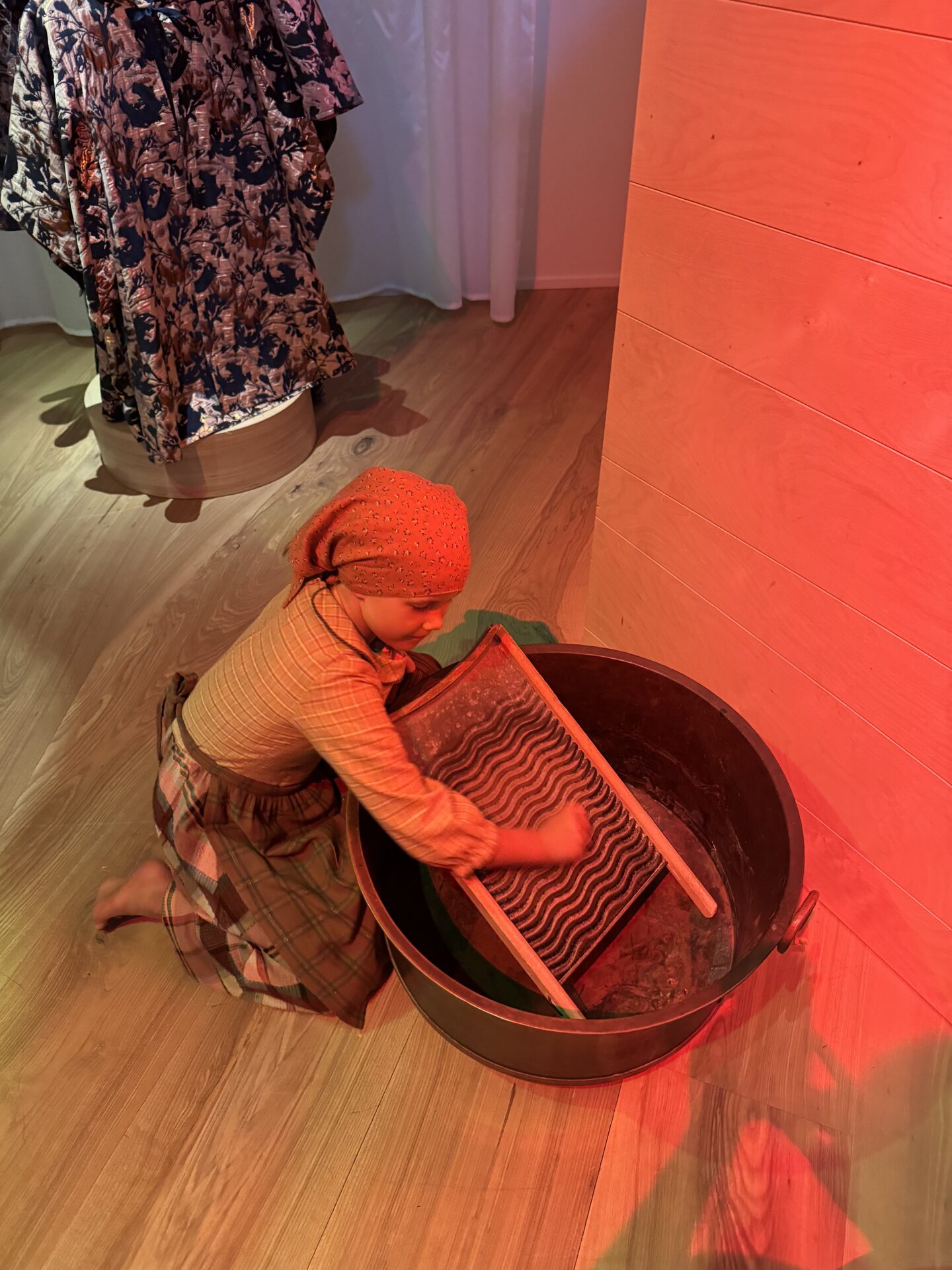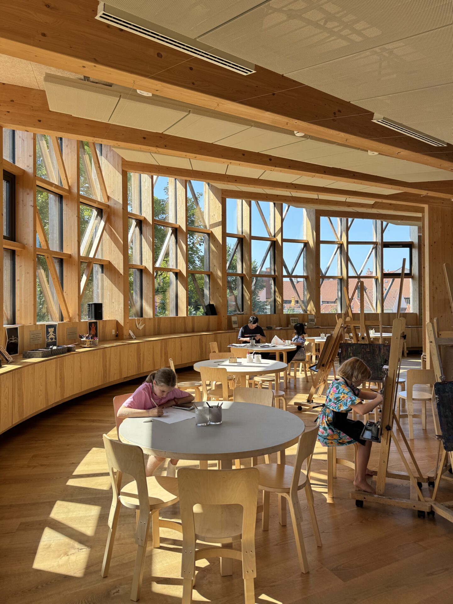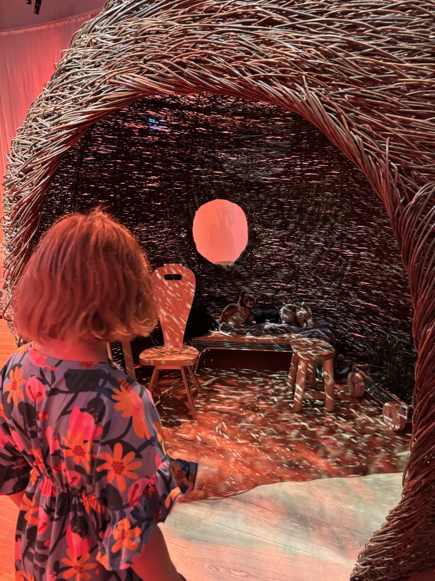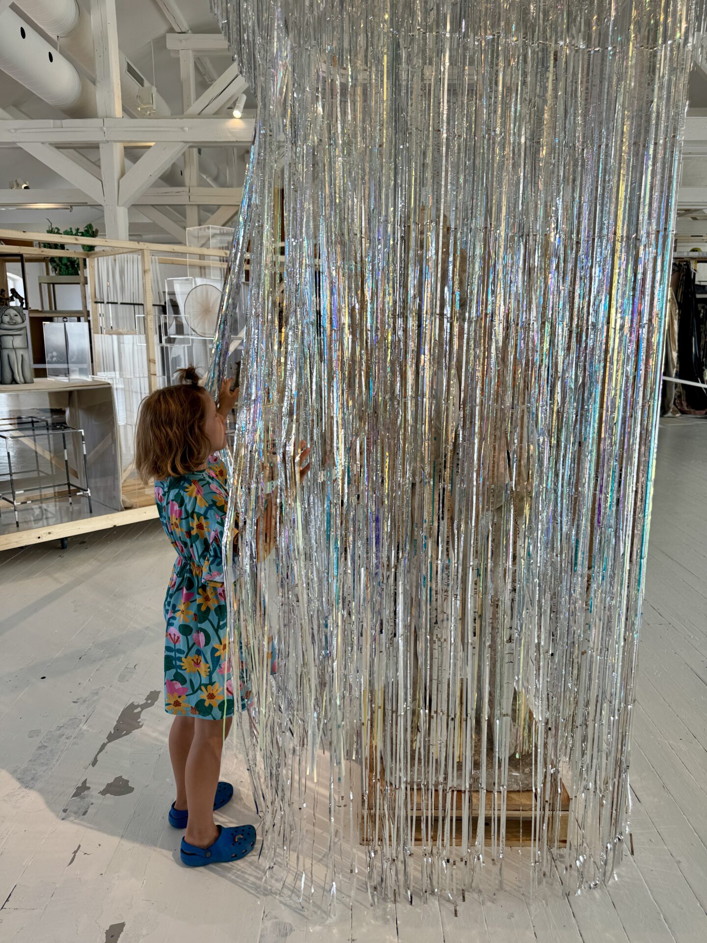 First of all, the design: the architecture is stunning – wood, glass, lots of greenery, everything feels light and beautiful. As for the exhibition, there are actually two parts. One is designed especially for children and is called Ville Vau. It’s not directly about Andersen’s fairy tales, but it’s a magical space filled with dozens of gorgeous costumes for kids (and even adults!) to dress up in. Parents can join the fun, and there’s also an upstairs creative room flooded with natural light where kids can paint and draw. Honestly, I wanted to sit down at an easel myself – such an inspiring space!